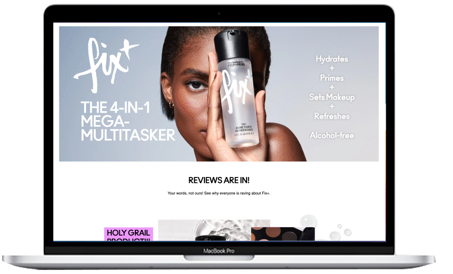 Drive awareness around M·A·C Fix+ as a 12-hour setting spray with good for skin benefits while highlighting ‘multi-misting’ usage and product versatility. Cross-sell with Studio Fix foundation franchise.